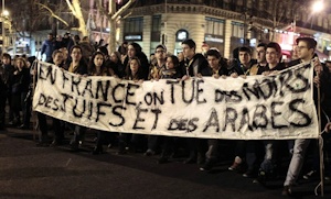 The killings sparked widespread horror in France, prompting the candidates in the April presidential election to put their campaigns temporarily on hold as a mark of respect to the victims. In Paris, Sarkozy and Hollande attended a service at the Nazareth synagogue. They were joined by green candidate Eva Joly who had been on a silent march at Place de la République organised by the Jewish student union UEJF (see picture)